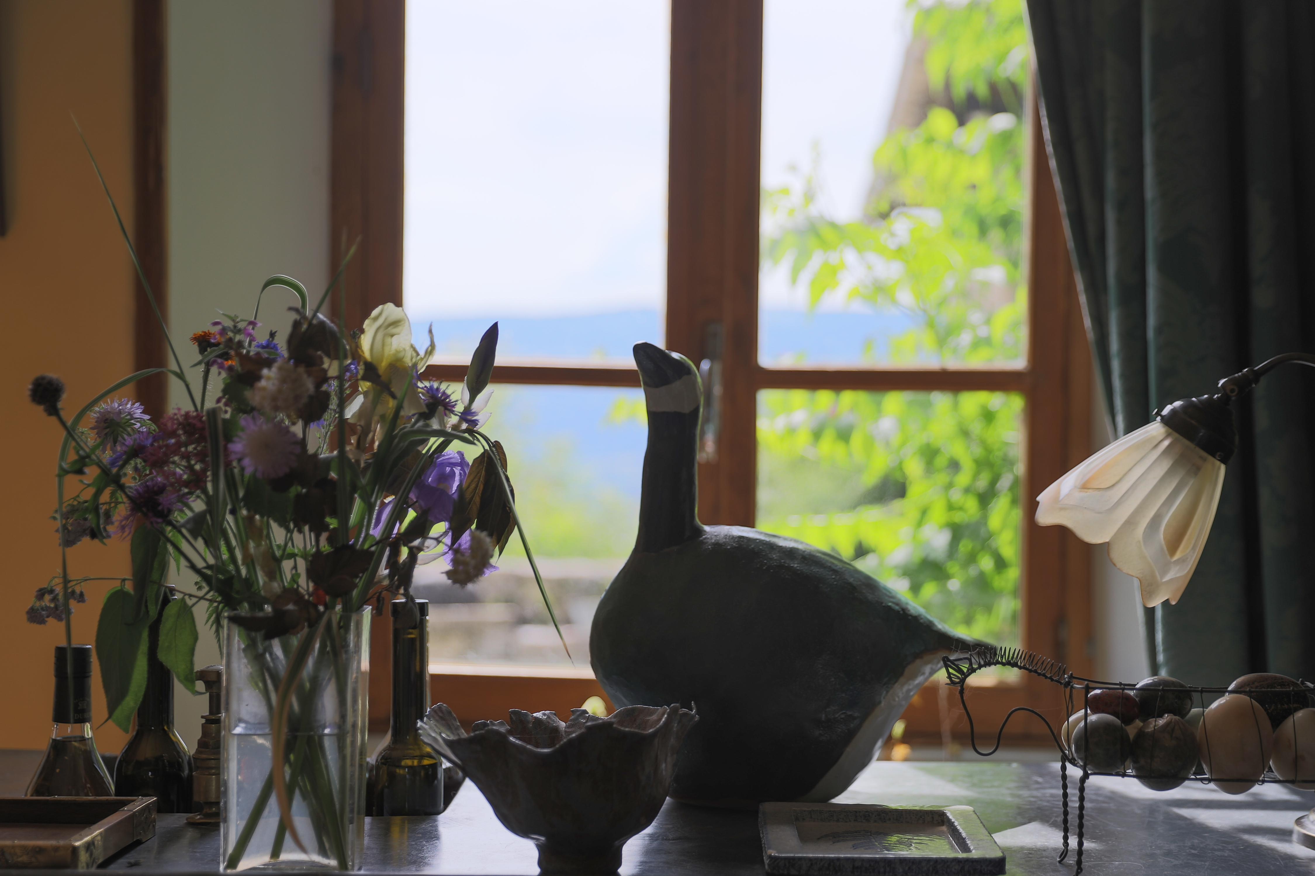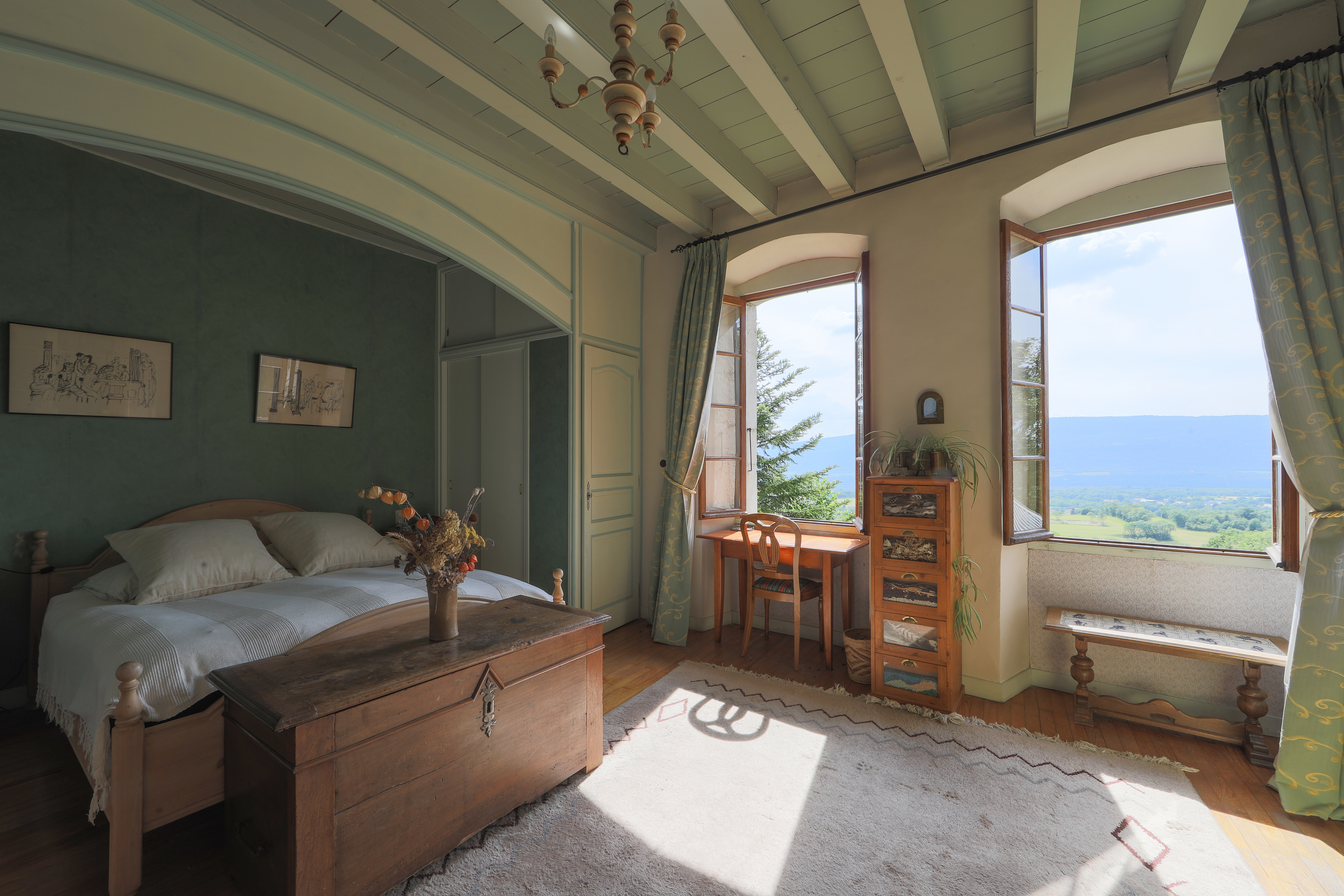 A visit to Château de Sothonod had been high on our wishlist for quite some time. The opportunity arose as we made a winter road-trip through France and Italy. The weather was cold and icy as we wound our way through beautiful villages up to the hamlet of Sothonod. We gazed at the magnificent entrance gate within the fortified walls. It felt magical and just got better as we were warmly greeted by Zandra, who took us in to sit by the ancient fireplace. The house is a treasure trove of fabulous art, sculptures and eclectic objects with great stories behind them. We stayed in the comfortable Green Room, with its own large sitting room, and spent our days wandering along local paths in the snow. Sunlight on the garden and the frozen swimming pool gave us an immense appetite to visit again in different seasons. We ate delicious dinners there and enjoyed fresh continental breakfasts. Thank you Zandra, your home is amazing and so are you!”