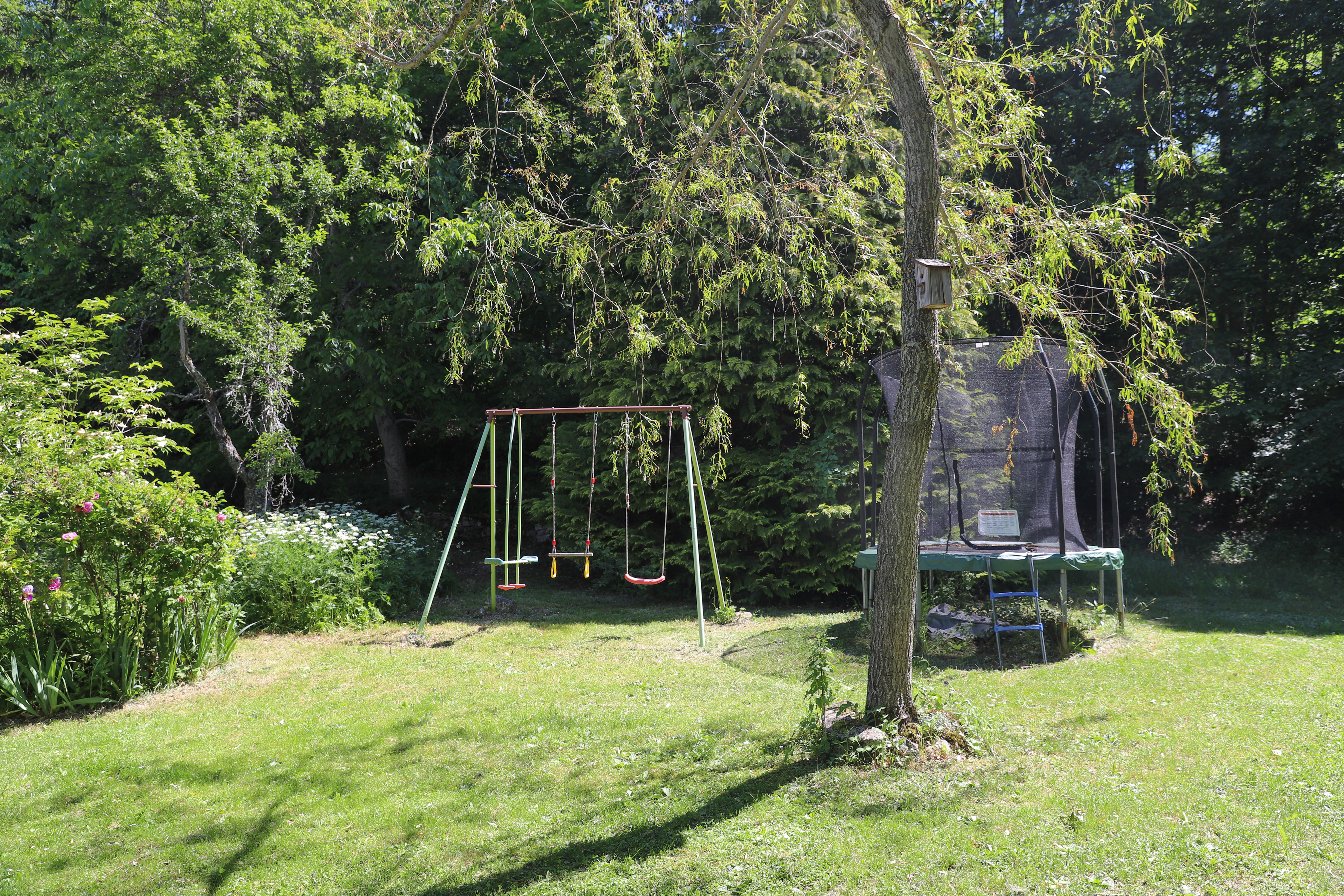 There are 12 acres of field, woods and garden, with a trampoline and swings to keep young visitors entertained, as well as a 20-metre heated swimming pool, in use from mid-May to October.